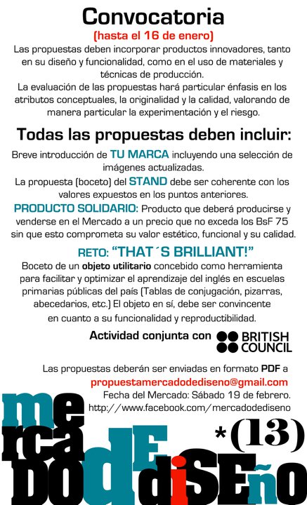Mercado de diseño (Guayoyo en sus comienzos), volvió para acelerarme el corazón y poner mi creatividad a prueba una vez más. Una delicia recibir un reto tan tempranito en el año. La adrenalina se dispara mientras mi cerebro empieza a funcionar, a imaginar…Suena cursi, jeje, pero quien es creativo sabe que se diseña con la mente y el corazón. Asi, salieron el catálogo, la reseña de la marca, los nuevos modelos y…un objeto que no planeaba diseñar, pero que me planteó sólidas interrogantes y abrió puertas. Pura satisfacción. Les dejo la convocatoria para que se hagan una idea de lo que fueron mis últimas dos semanas. Y el resultado: señores, ¡¡Ciudadela va para el mercado!! (Más adelante les muestro que llevaré y cúal fué ese objeto que diseñé para aprender inglés.)