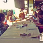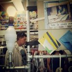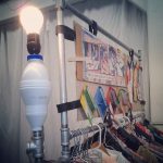 A principios de agosto participé en Vitrina Safrisca. Fue muy buena experiencia y me dio la oportunidad de estrenar mi nuevo stand, que mezcla un poco mi stand del comienzo, el tener que incluir ropa en mi espacio y el montar y desmontar de manera práctica e individual. Debo confesar que no era muy amiga de utilizar tubos…amaba mi stand de puro cartón, pero luego de verlo destruirse varias veces al estar en plazas, me propuse mezclar materiales. Tubo y carton reusado forrado con vinil de pancarta.