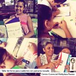 El sábado pasado en el Centro Comercial Multiplaza Paraíso se llevó a cabo el primer cambalache de libros. Ciudadela, estuvo acompañándolos con dos talleres para niños y padres: Forros para cuadernos con pancarta reciclada y estuches hechos a partir de una botella plástica de agua. Los materiales los recolectó el centro comercial, de la mano de Dulce Pérez, quien se ha encargado de fomentar el reciclaje en la comunidad, y la creatividad la trajeron los chiquitos.